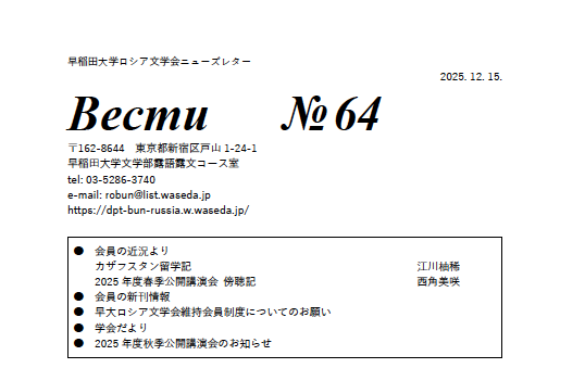 イベント 2025年度 早大ロシア文学会 秋季公開講演会